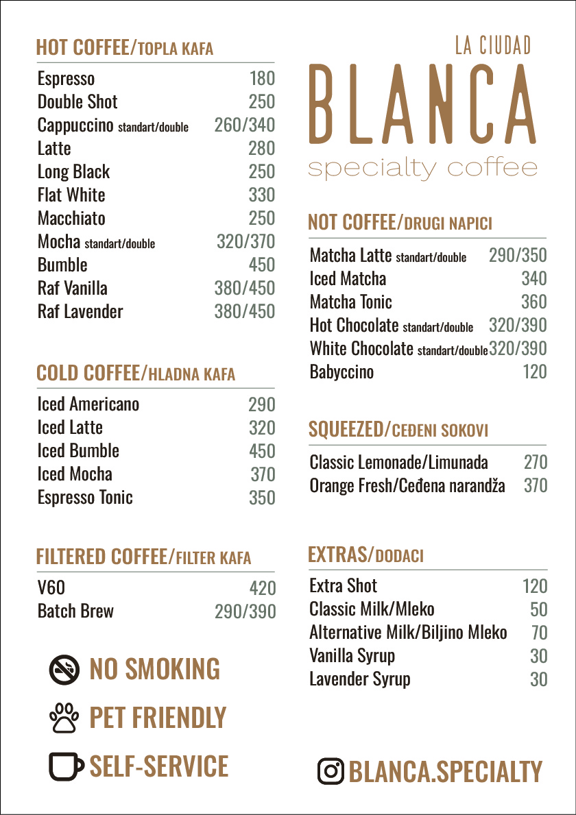 Welcome to Blanca, a cozy haven nestled at Politova 12 in Beograd. This charming cafe specializes in a delightful blend of exceptional coffee and delectable desserts, making it a must-visit for coffee lovers and dessert enthusiasts alike. Customers rave about the rich flavors and perfect consistency of the coffee, whether it's a creamy latte or a refreshing iced coffee.